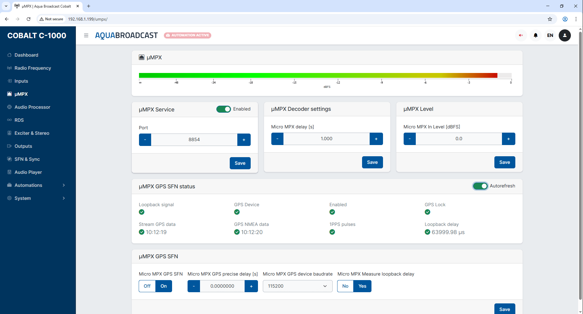 Los transmisores COBALT de Aqua Broadcast equipados con la opción MicroMPX SFN son una solución revolucionaria diseñada para radiodifusoras que exigen el máximo nivel de eficiencia, sincronización perfecta y rentabilidad en el transporte del audio en las transmisiones en una única frecuencia FM.